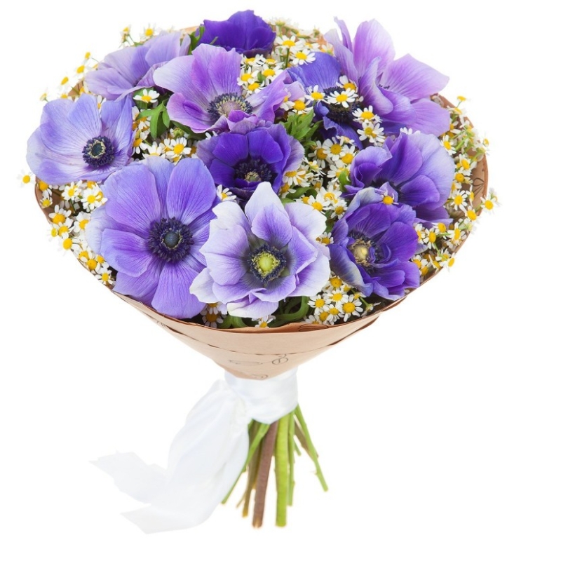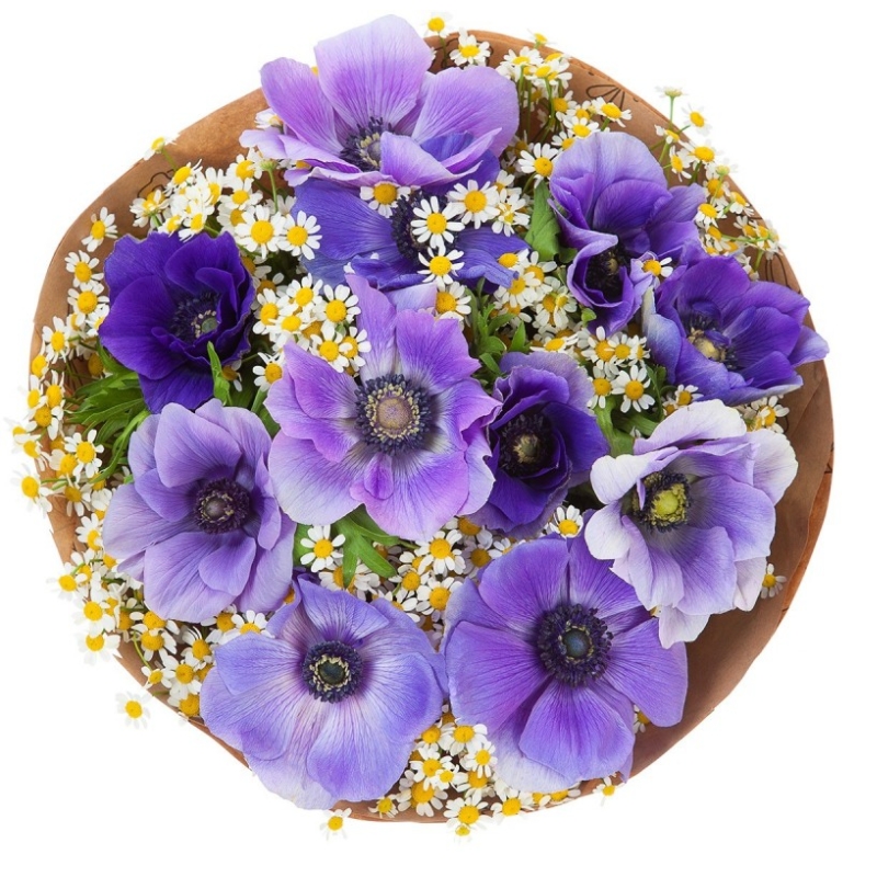Букет из анемонов и ромашек "Фортуна"