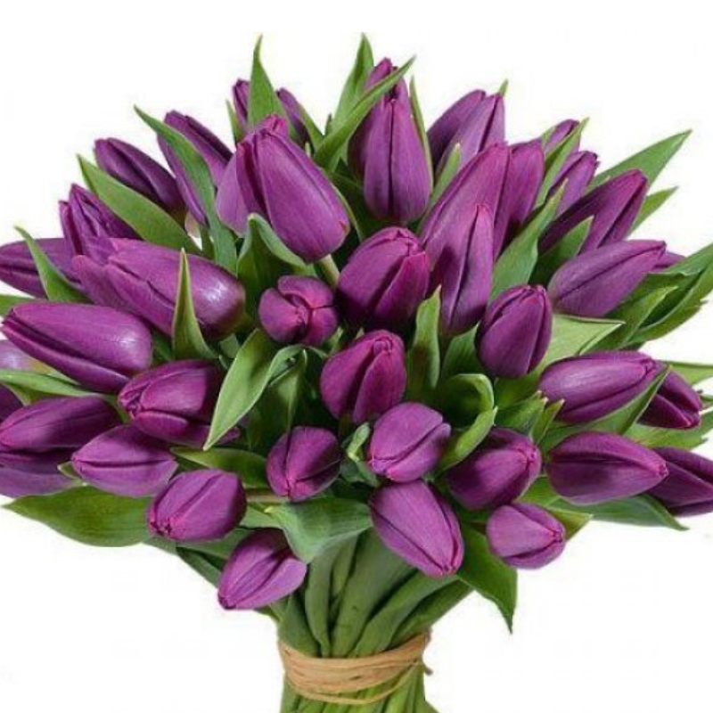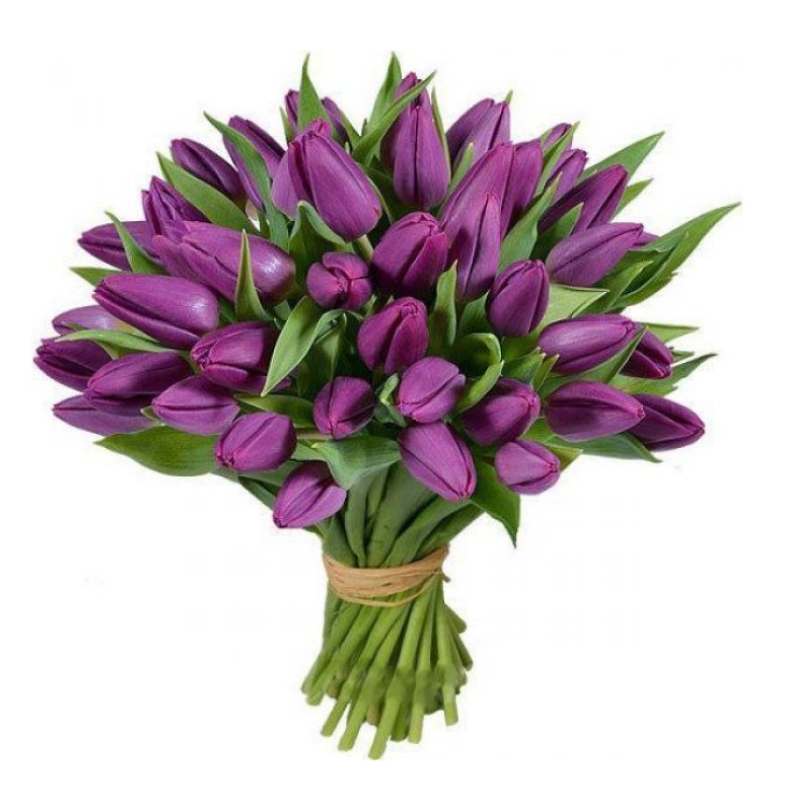 Букет состоит из 51 сиреневый тюльпан, атласная лента.