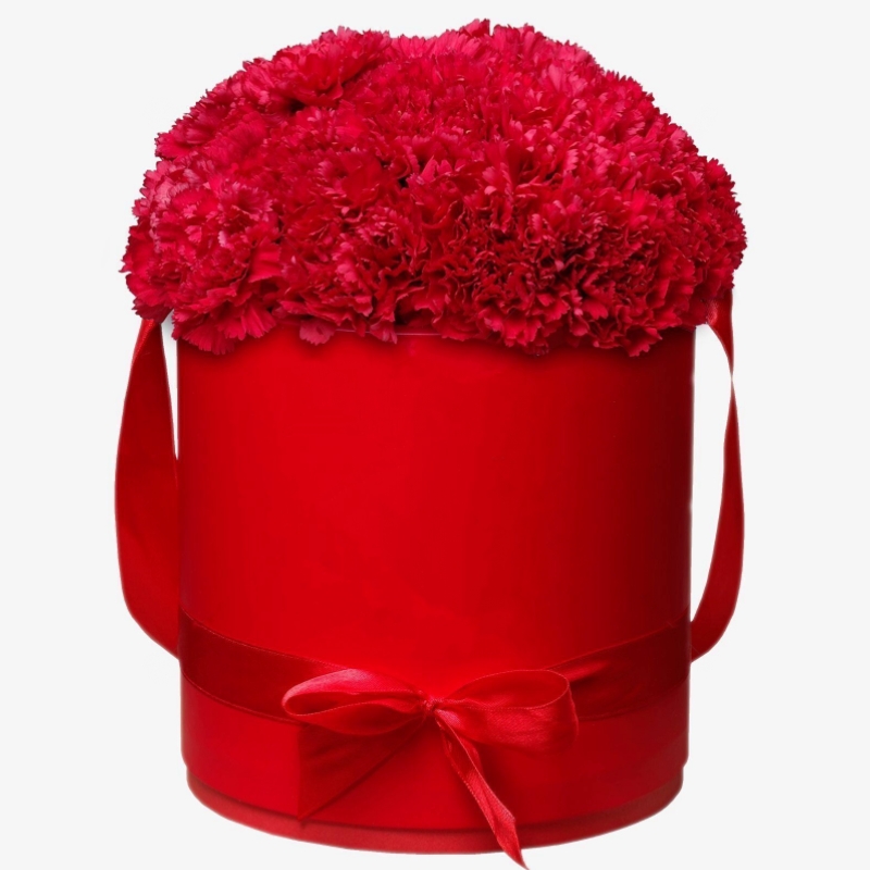 Букет из 25 красных гвоздик в коробке
