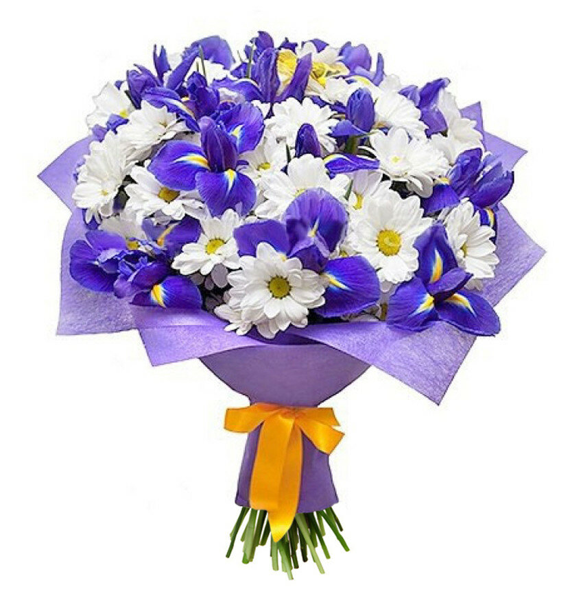 Букет из ирисов и хризантемы "Небо в алмазах"