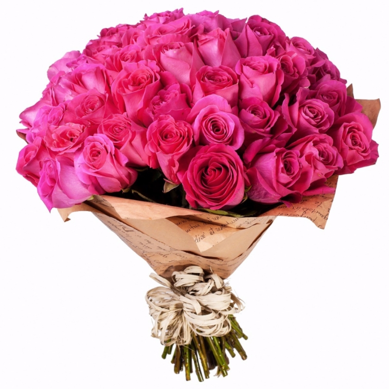 Букет из 51 малиновой розы в крафте